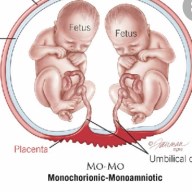 We were told that they were in fact MCMA. In basic form this meant that they were in one sac with one placenta. A high risk pregnancy.